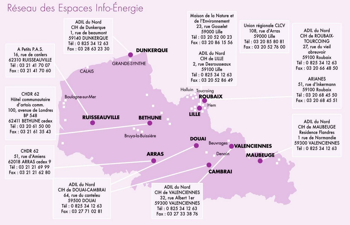 Le réseau des Espaces Info Energie en Nord Pas de Calais :