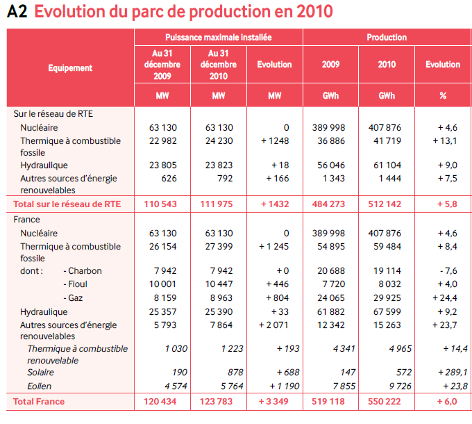 Etrait, ci-dessous, de la page 3 de ce document : la production, en France,