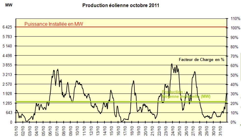 Pratiquement, la notion de facteur de charge appliquée à l'éolien eest inadéquate. Par contre, le fait que la parc éolien français produit très souvent est intéressant pour palier à l'intermittence des renouvelables liées au Soleil
