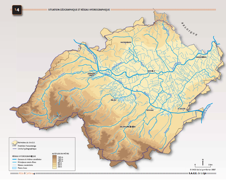 Carte du réseau hydrographique du bassin versant de la Lys (extraite