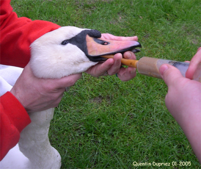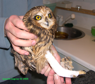 - dans le cas d'un rapace, attention aux serres et au bec. Pour l'immobiliser,