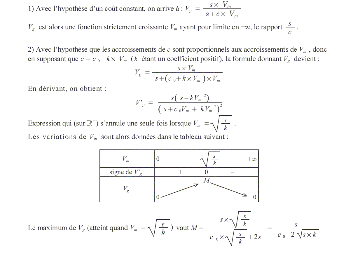on suppose que le coût au km(« c ») est une fonction croissante